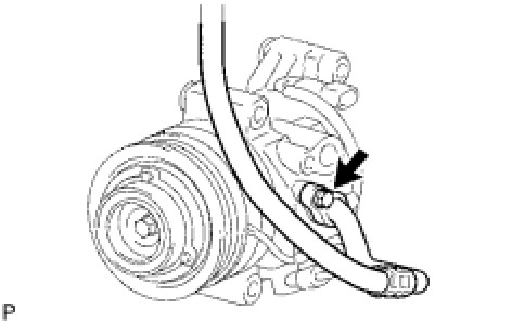 (d) Install the suction hose sub-assembly onto the compressor and magnetic clutch with the bolt.