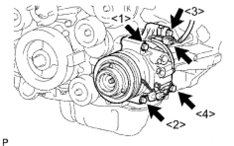 Tighten the bolts in the sequence order shown in the illustration to install the compressor and magnetic clutch.