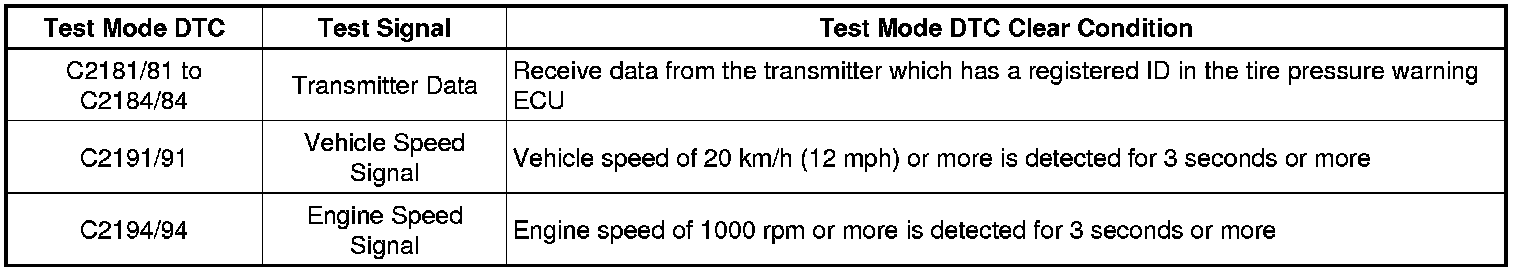 After completing the signal check for each inspection item, the DTCs for systems that are determined to be normal by the tire pressure warning ECU will be erased.