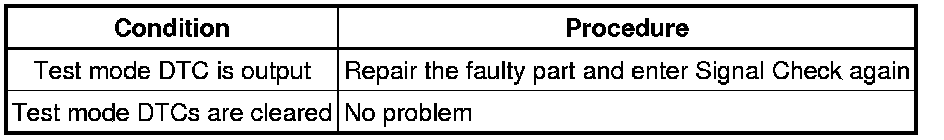 * When signal check returns to normal mode, all the test mode DTCs will be erased.