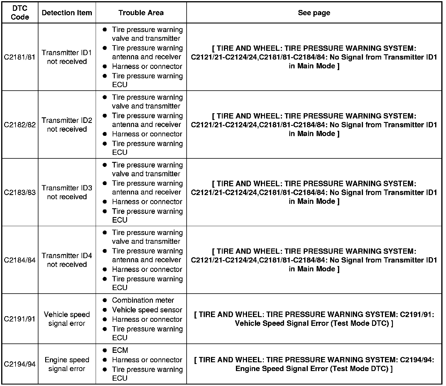 TIRE AND WHEEL: TIRE PRESSURE WARNING SYSTEM: TEST MODE PROCEDURE