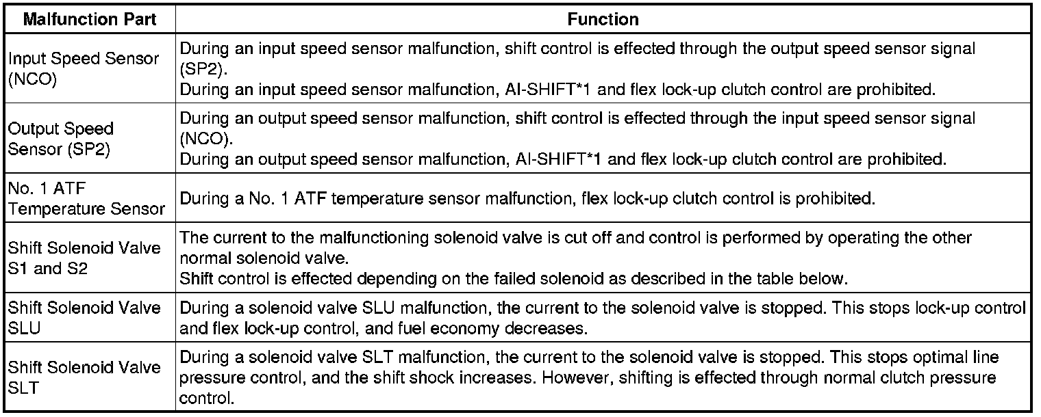 This function minimizes the loss of the ECT (Electronic Controlled automatic Transmission) functions when a malfunction occurs in a sensor or solenoid.