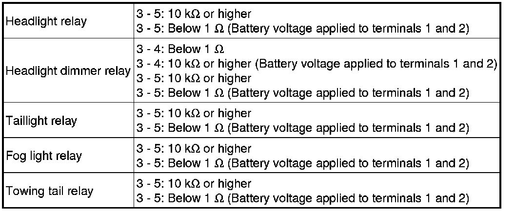 SERVICE SPECIFICATIONS: LIGHTING: SERVICE DATA
