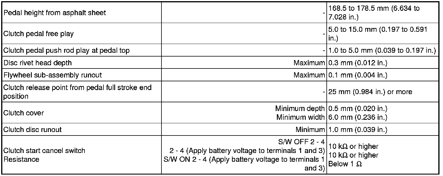 SERVICE SPECIFICATIONS: CLUTCH: SERVICE DATA