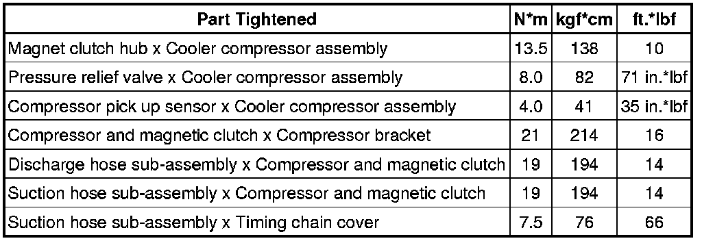 SERVICE SPECIFICATIONS: AIR CONDITIONING: TORQUE SPECIFICATIONS
