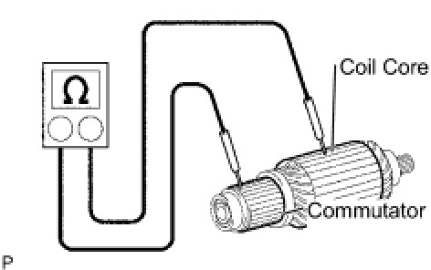 (1) Using an ohmmeter, check the resistance between the commutator and armature coil core.
