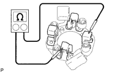 (1) Using an ohmmeter, check the resistance between the segments of the commutator.