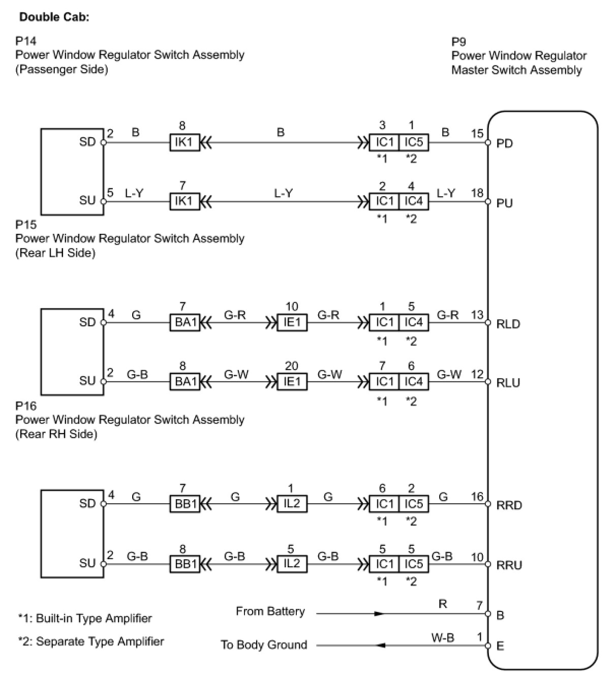 * With the ignition switch ON, the power window regulator master switch assembly transmits remote switch signals to the passenger side power window and rear door power window regulator switches. Then, the regulator switches drive the power window regulator motors.