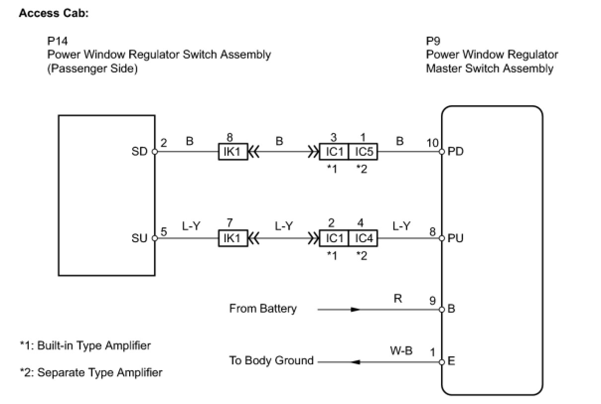 (b) Access cab: Inspect the power window regulator master switch assembly.