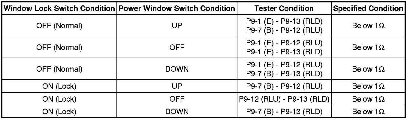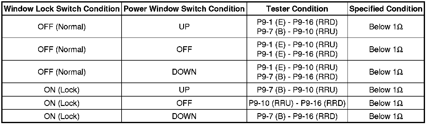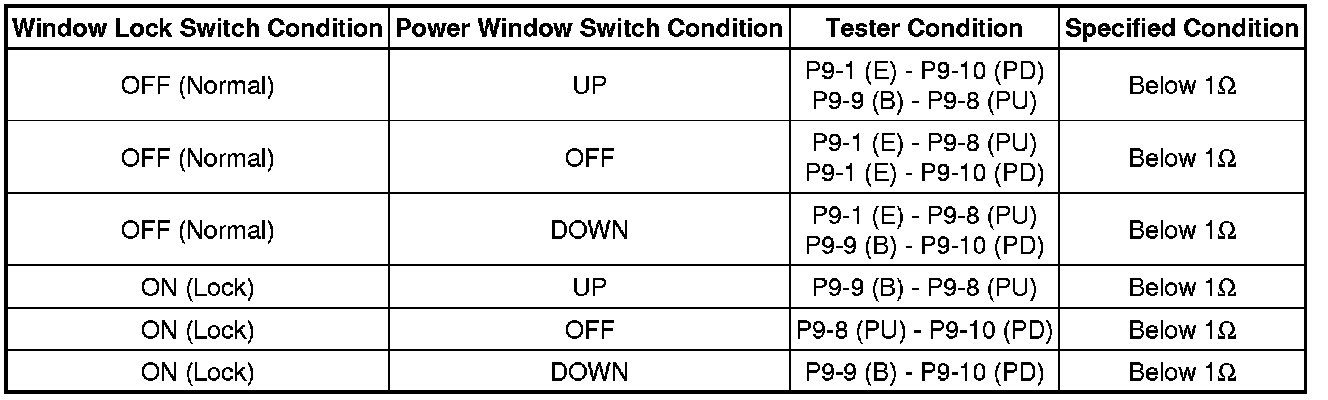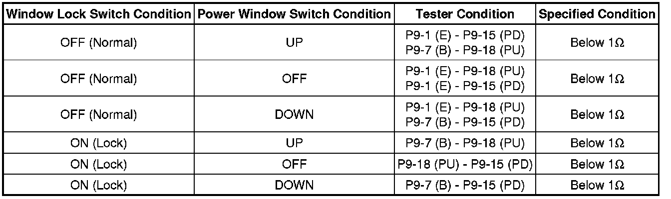 (a) Turn the window lock switch OFF and operate the master switches assembly passenger side and rear door side switches. Check that the remote UP/DOWN function operates normally.