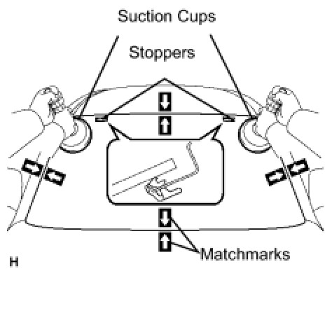 (1) Using suction cups, position the windshield glass so that the matchmarks are aligned. Press it in gently along the rim