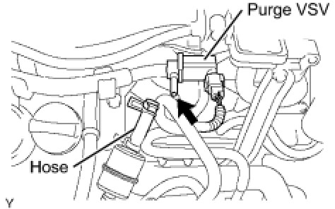 (c) Disconnect the hose (connected to the canister) from the purge VSV.