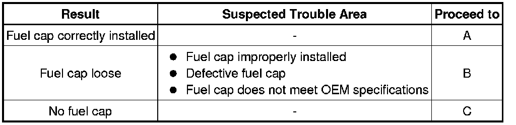 B -- CORRECTLY REINSTALL OR REPLACE FUEL CAP ASSEMBLY
