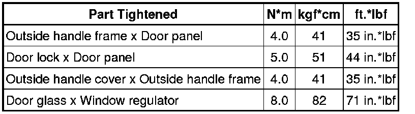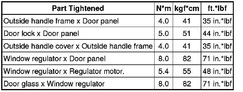 SERVICE SPECIFICATIONS: DOOR LOCK: TORQUE SPECIFICATIONS