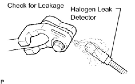 (c) Using a halogen leak detector, check the refrigerant line for leakage.