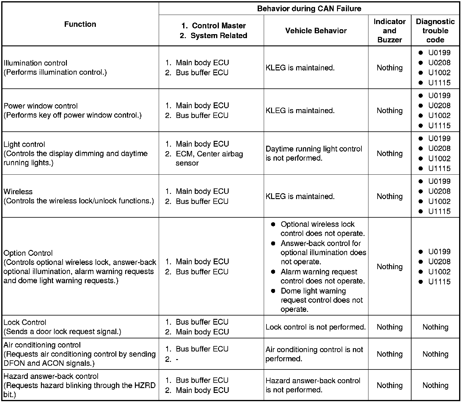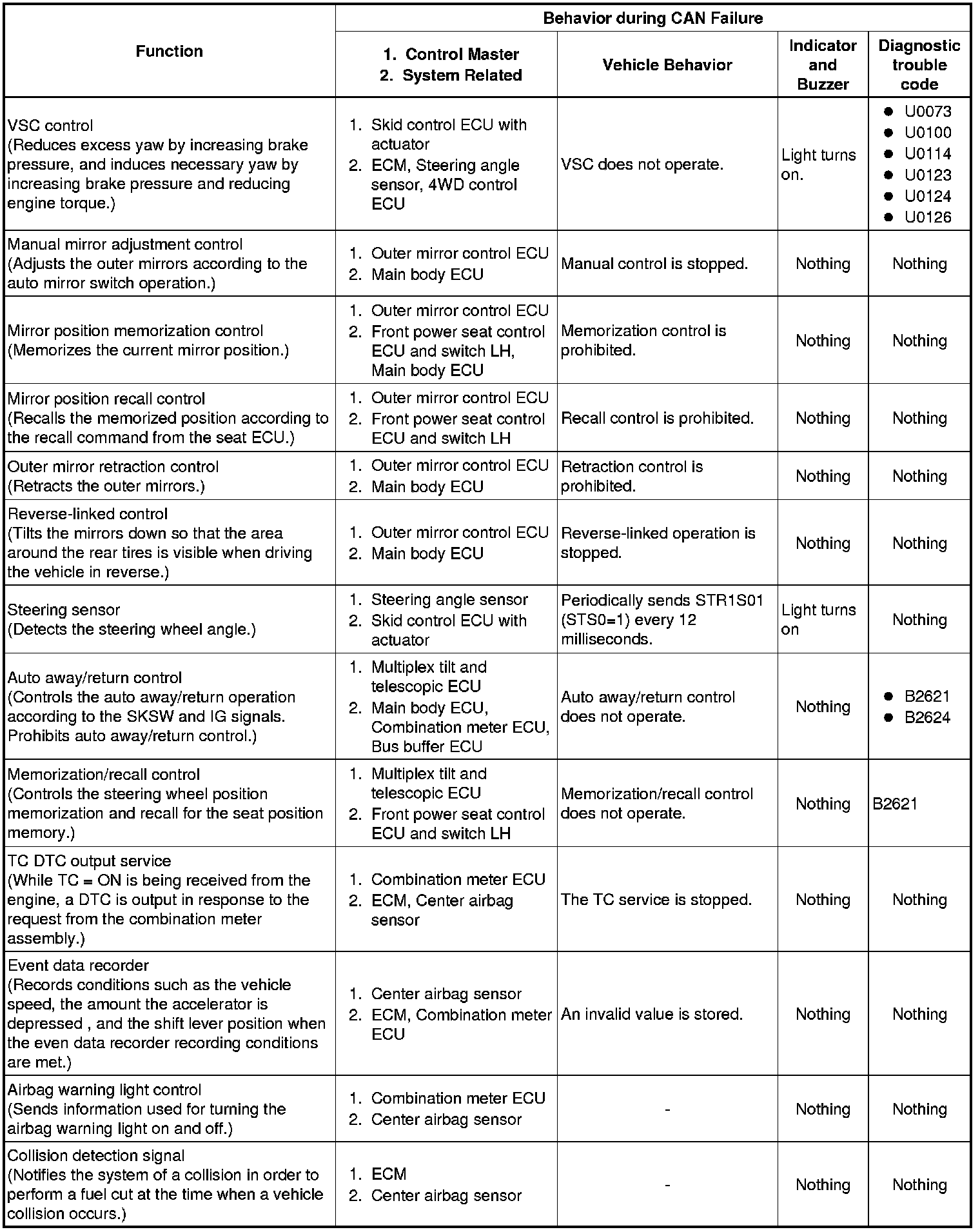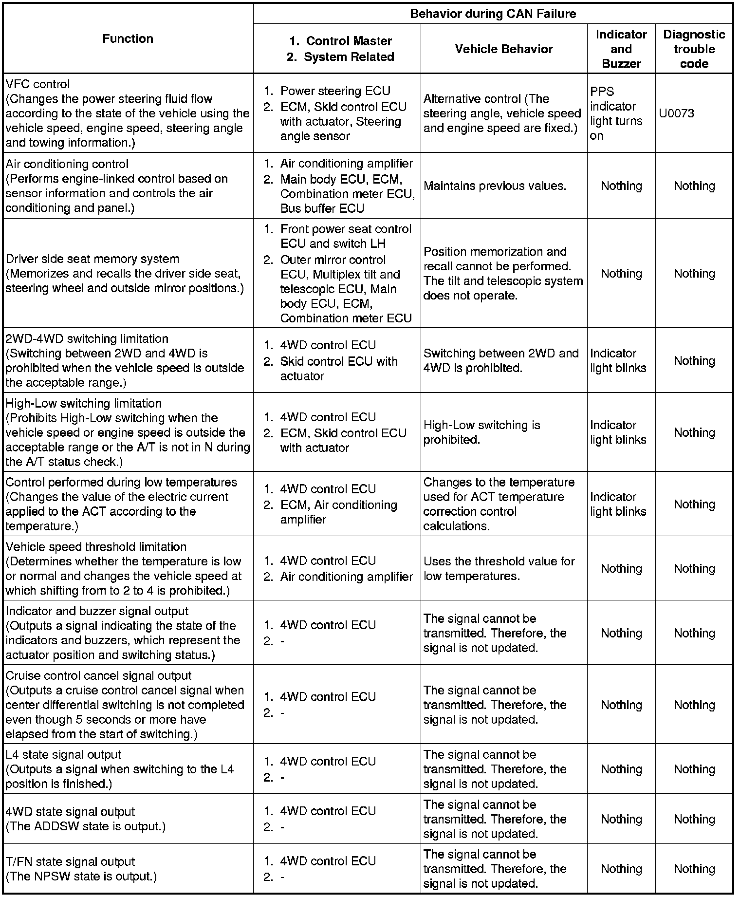 (a) When communication fails in any of the main wires (communication lines) due to a short circuit or other causes, the fail-safe function, which is specified for each system, operates to prevent the system from malfunctioning.