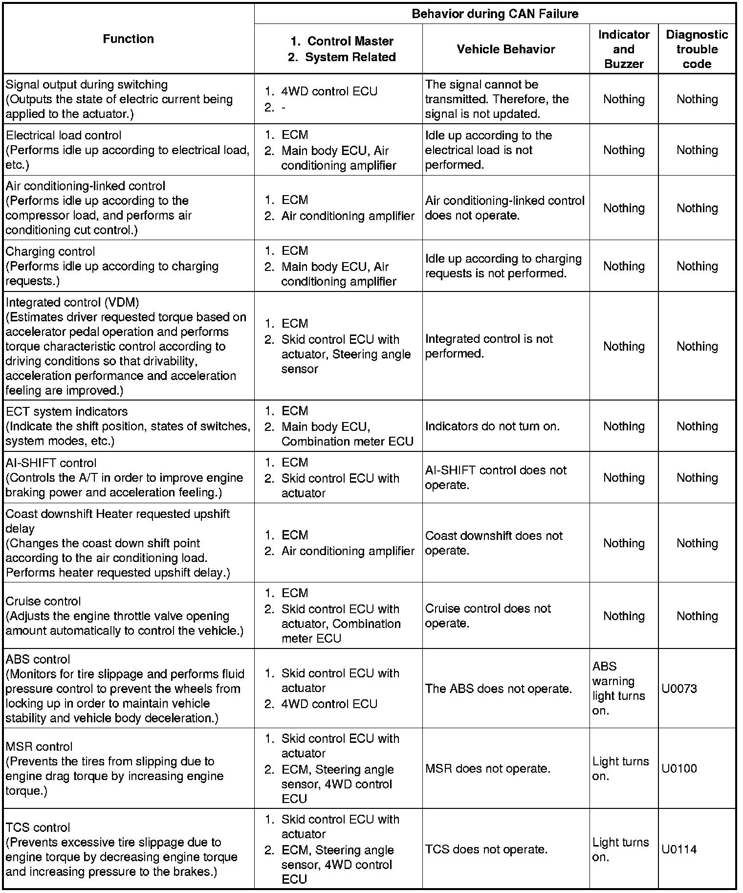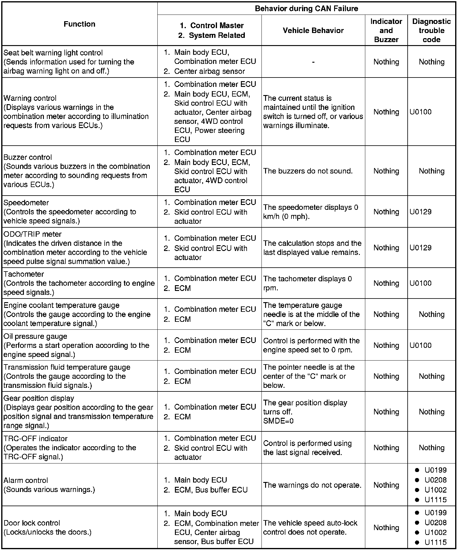 CAN COMMUNICATION: CAN COMMUNICATION SYSTEM: FAIL-SAFE CHART