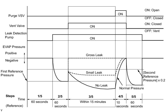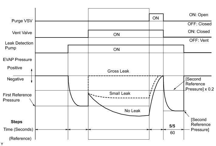 (b) Compare the EVAP pressure from step 3/5 and the second reference pressure (step 5/5).