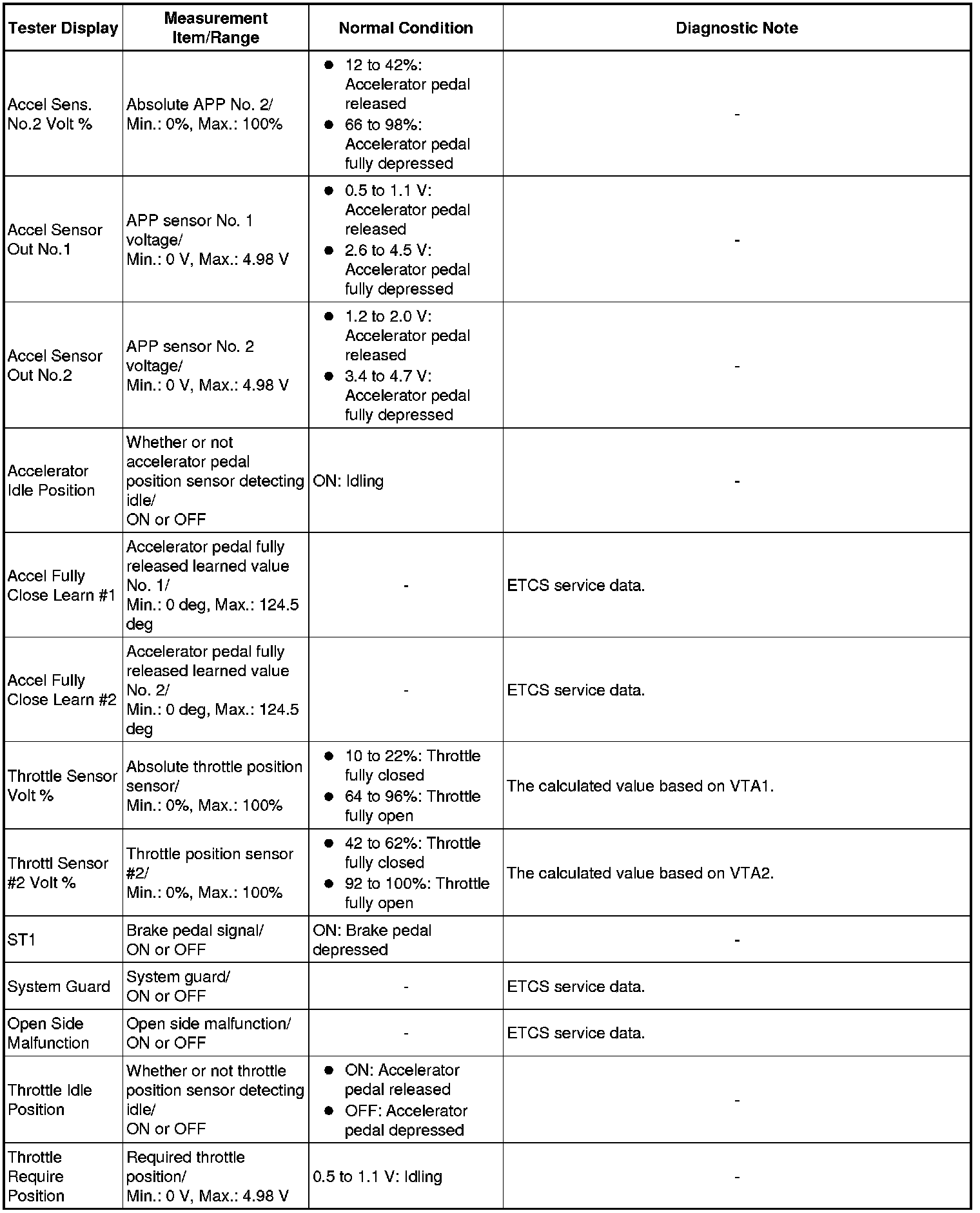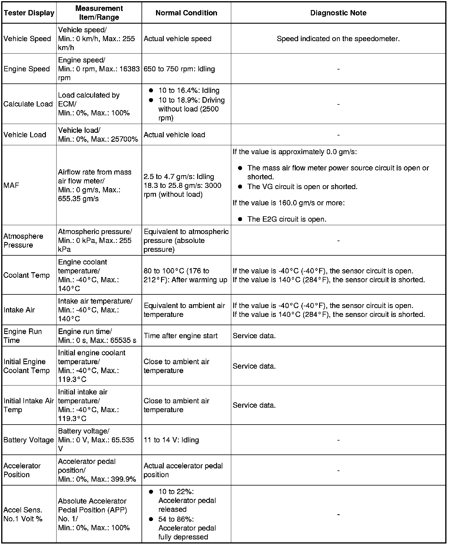 *: This excludes the throttle valve opening percentage due to Idle Speed Control (ISC).