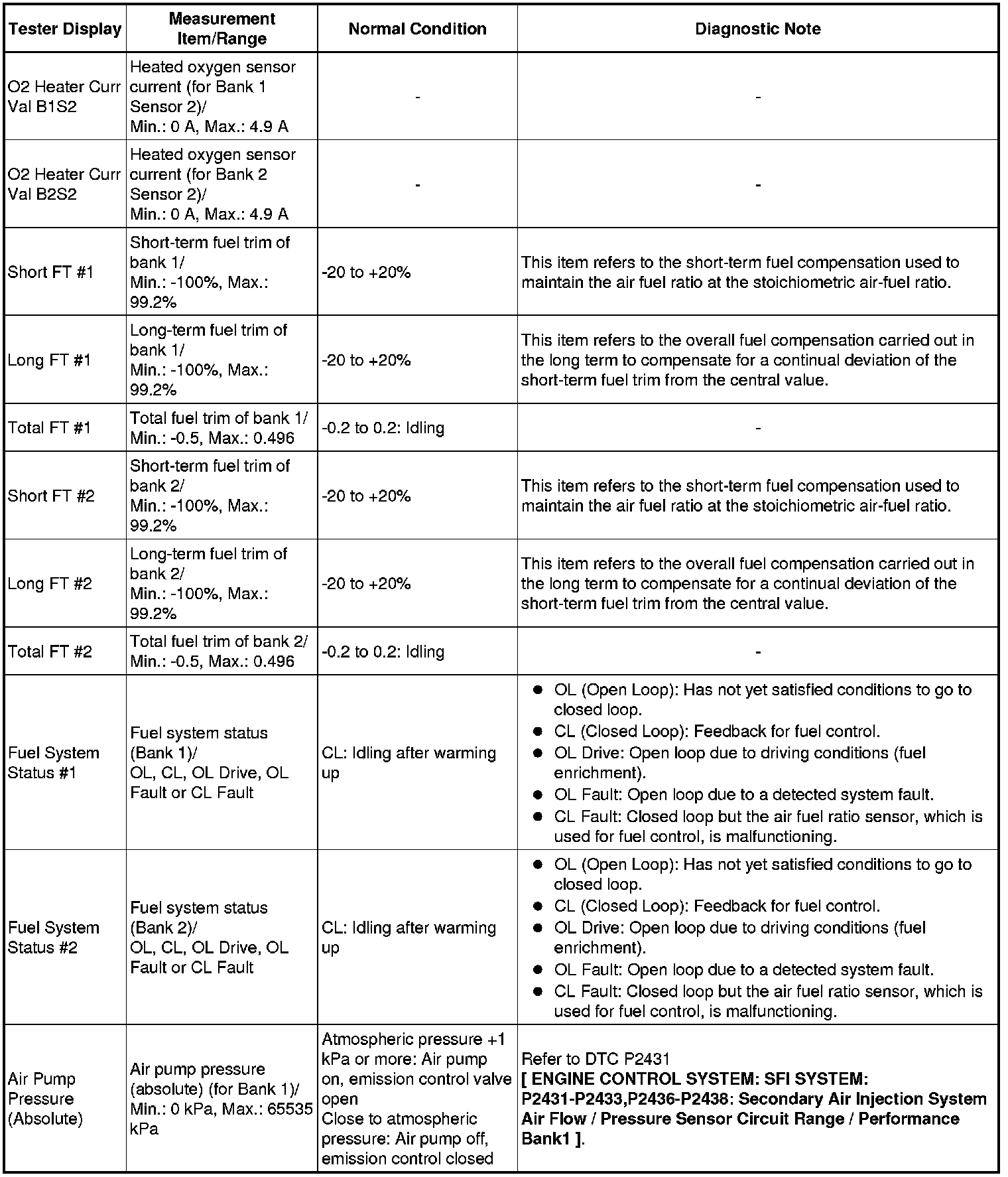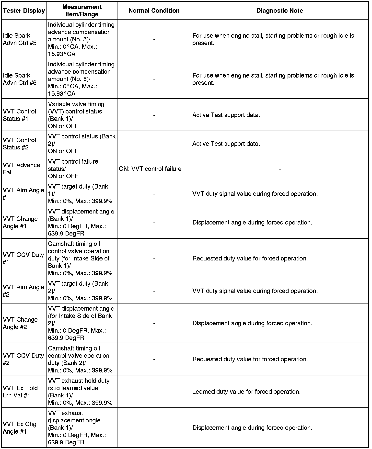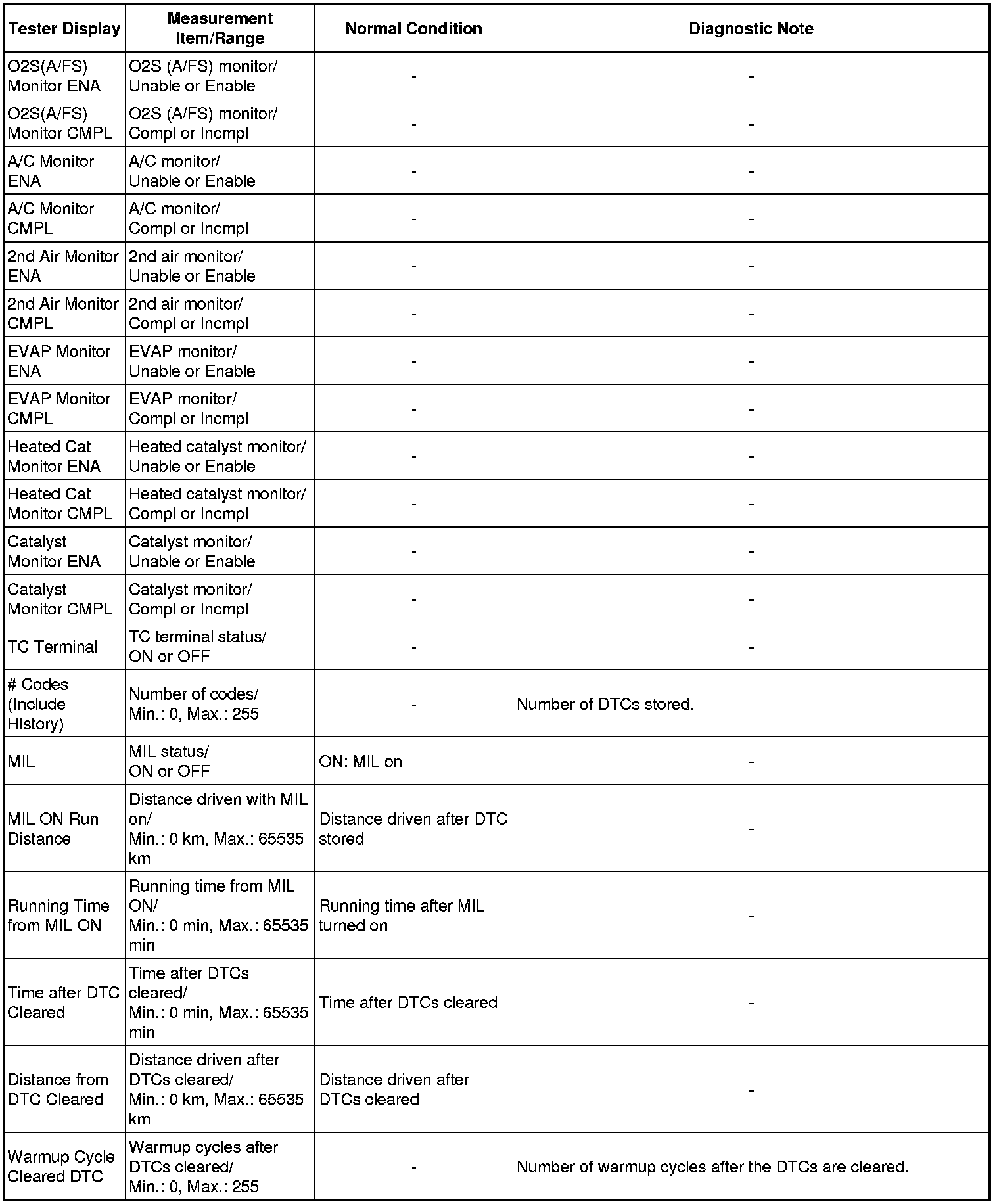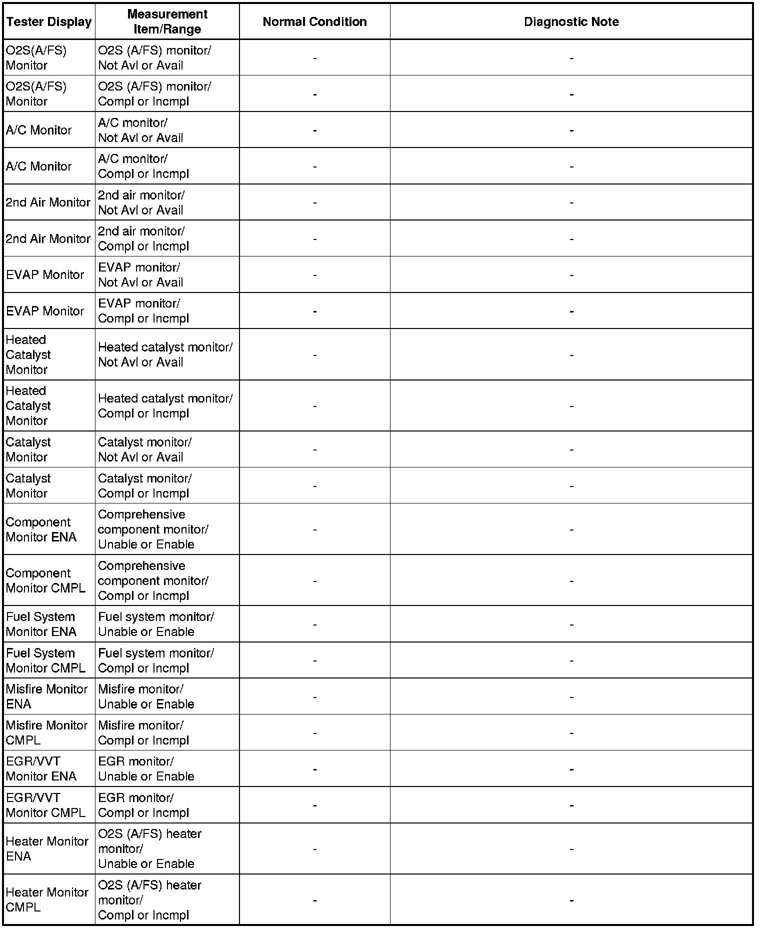 Normal Condition: If no conditions are specifically stated for "idling", the shift lever should be in N or P, the A/C switch should be off and all accessory switches should be off.