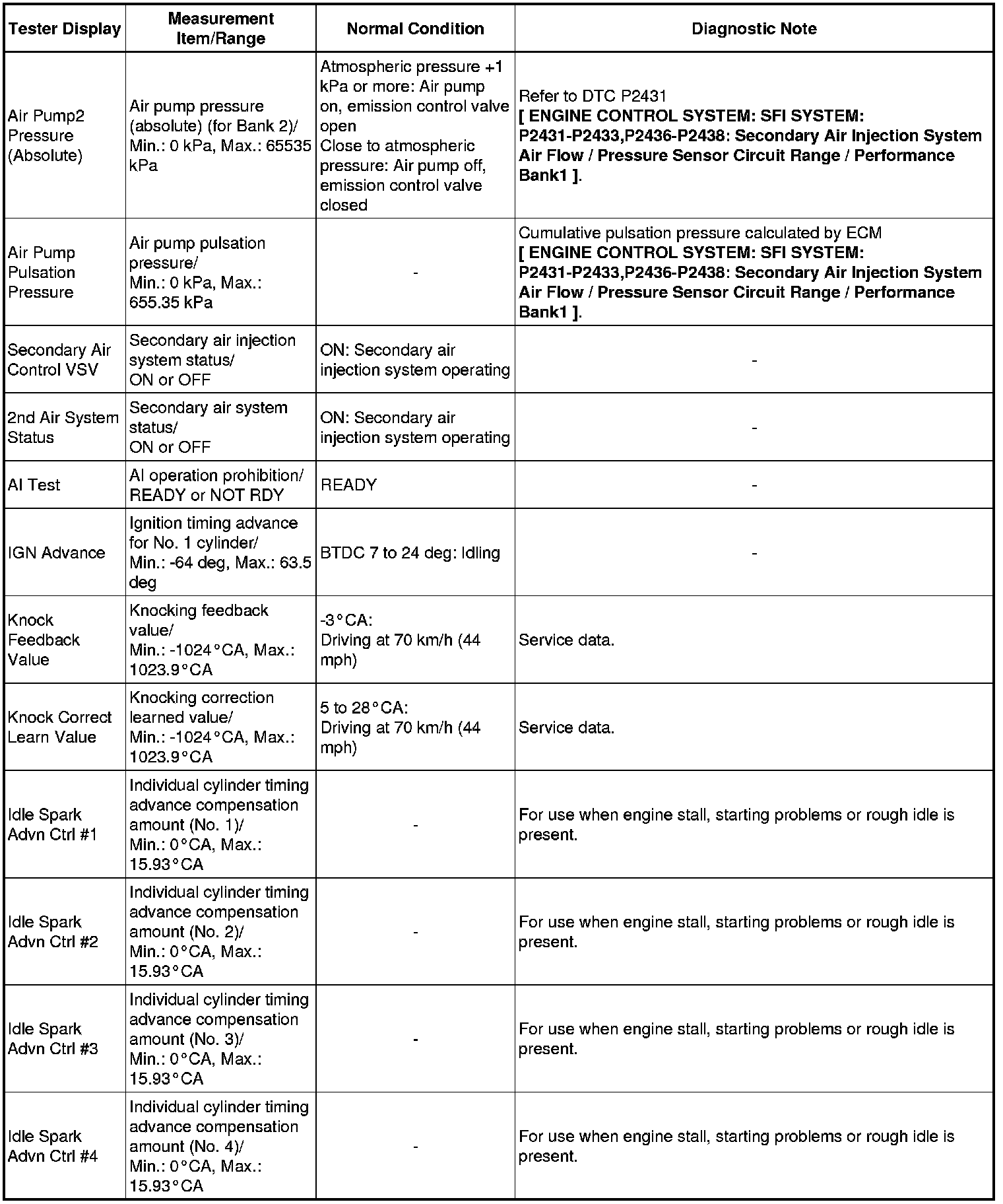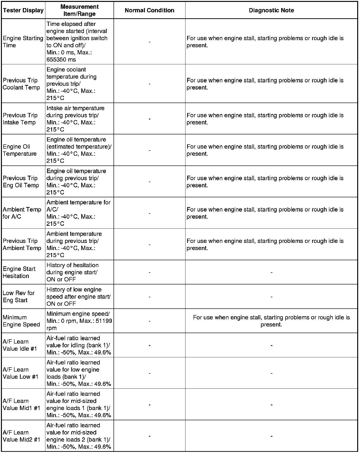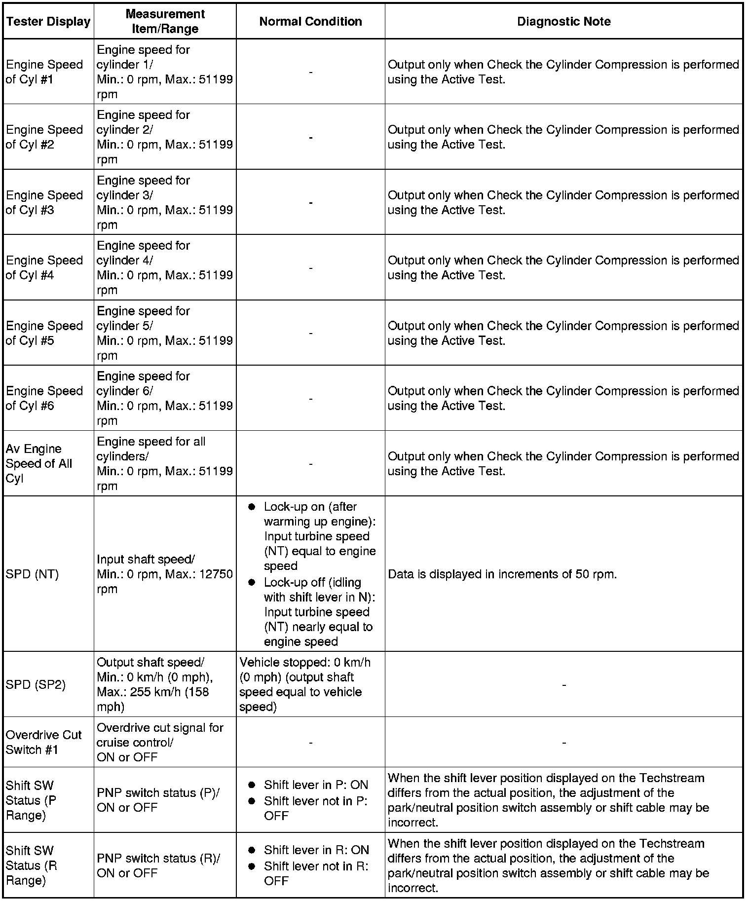 *2: When cranking the engine, the speed of each cylinder is measured.