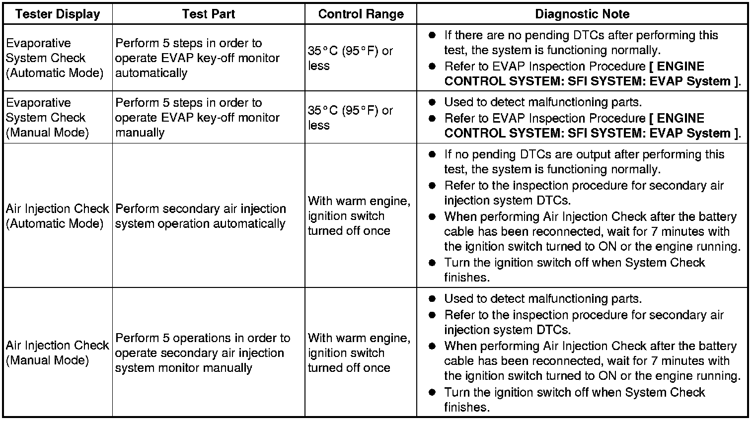 (e) Perform the system check by referring to the table below.
