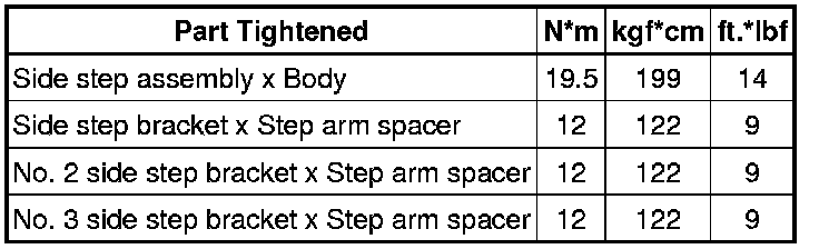 SERVICE SPECIFICATIONS: EXTERIOR: TORQUE SPECIFICATIONS
