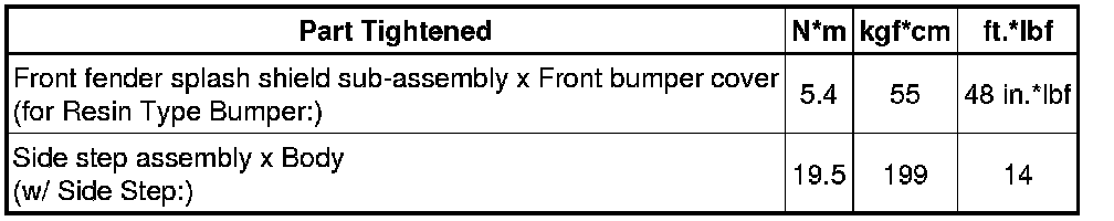 REAR BUMPER (for Resin Type Bumper:)