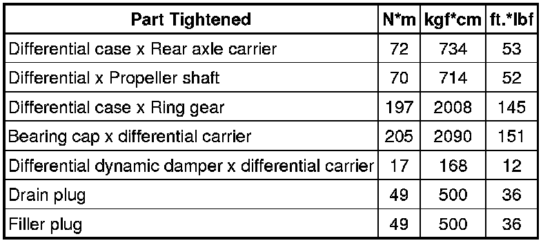 SERVICE SPECIFICATIONS: DIFFERENTIAL: TORQUE SPECIFICATIONS
