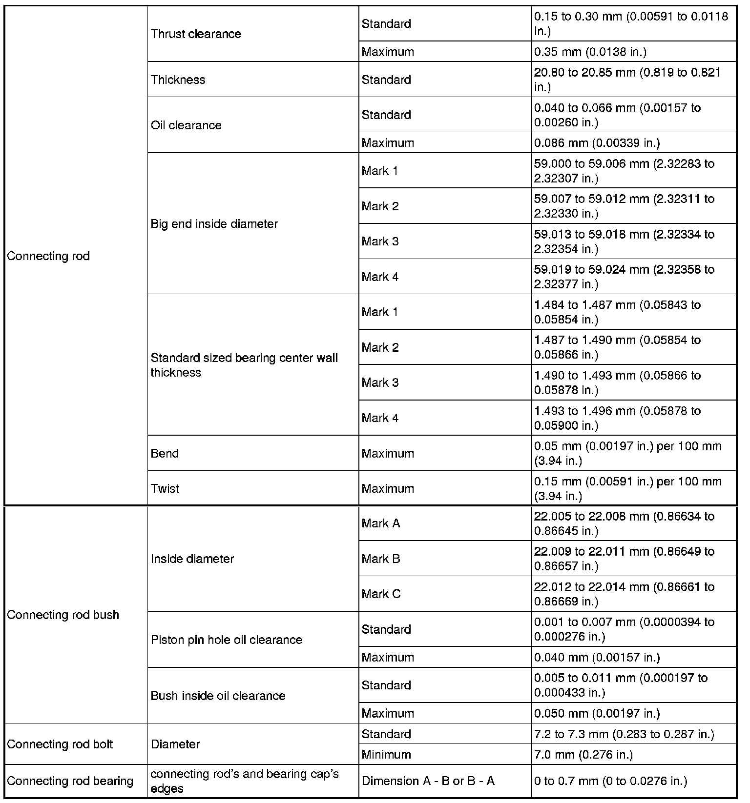 Connecting Rod Side Clearance, Out-of-Round and Diameter