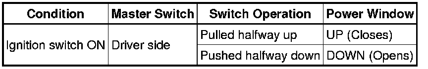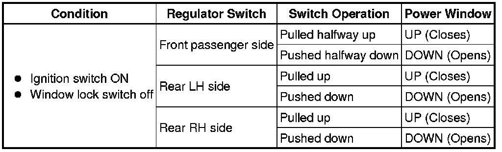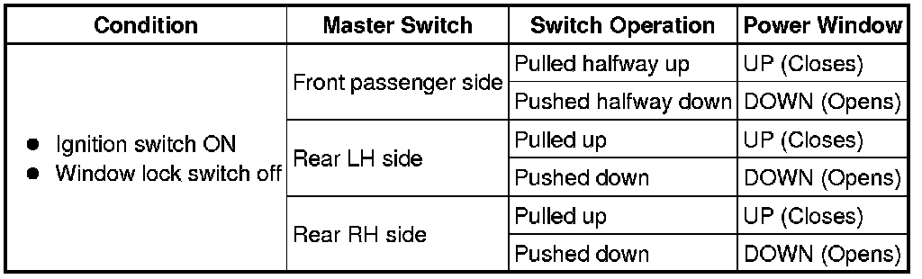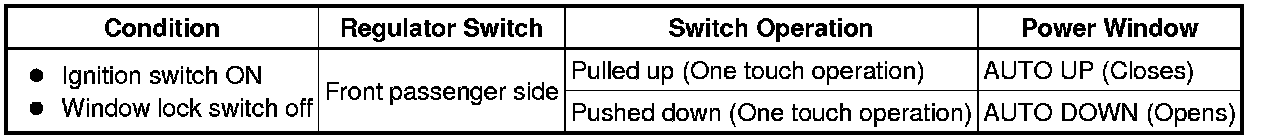 (b) Check that the front passenger side and rear power windows operate as follows: