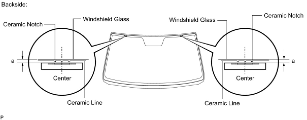 (b) Remove the peeling paper from the adhesive part of the dam. While aligning the dam to the ceramic notch and dam reference line, install the dam (adhesive side) to the glass (Primer G area).