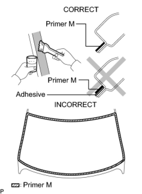 (b) Apply Primer G to the windshield outside moulding area "a" shown in the illustration.