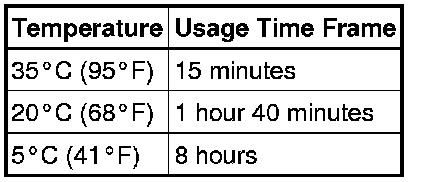 After cutting off the tip, use all adhesive within the time written in the table below.