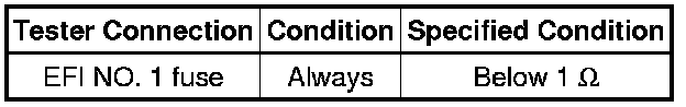 If the result is not as specified, replace the EFI No. 1 fuse.