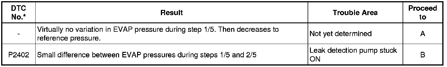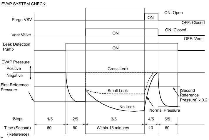 (b) Compare the EVAP pressure in step 3/5 and the second reference pressure (step 5/5).