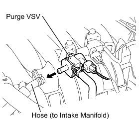 (b) Disconnect the hose (connected to the canister) from the purge VSV.