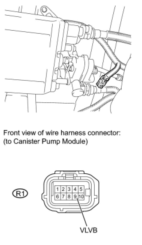 (c) Apply the battery voltage to terminals 9 (VLVB) and 8 (VGND) of the canister pump module.