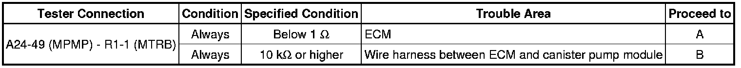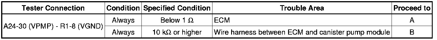B -- CHECK HARNESS AND CONNECTOR (ECM - CANISTER PUMP MODULE)