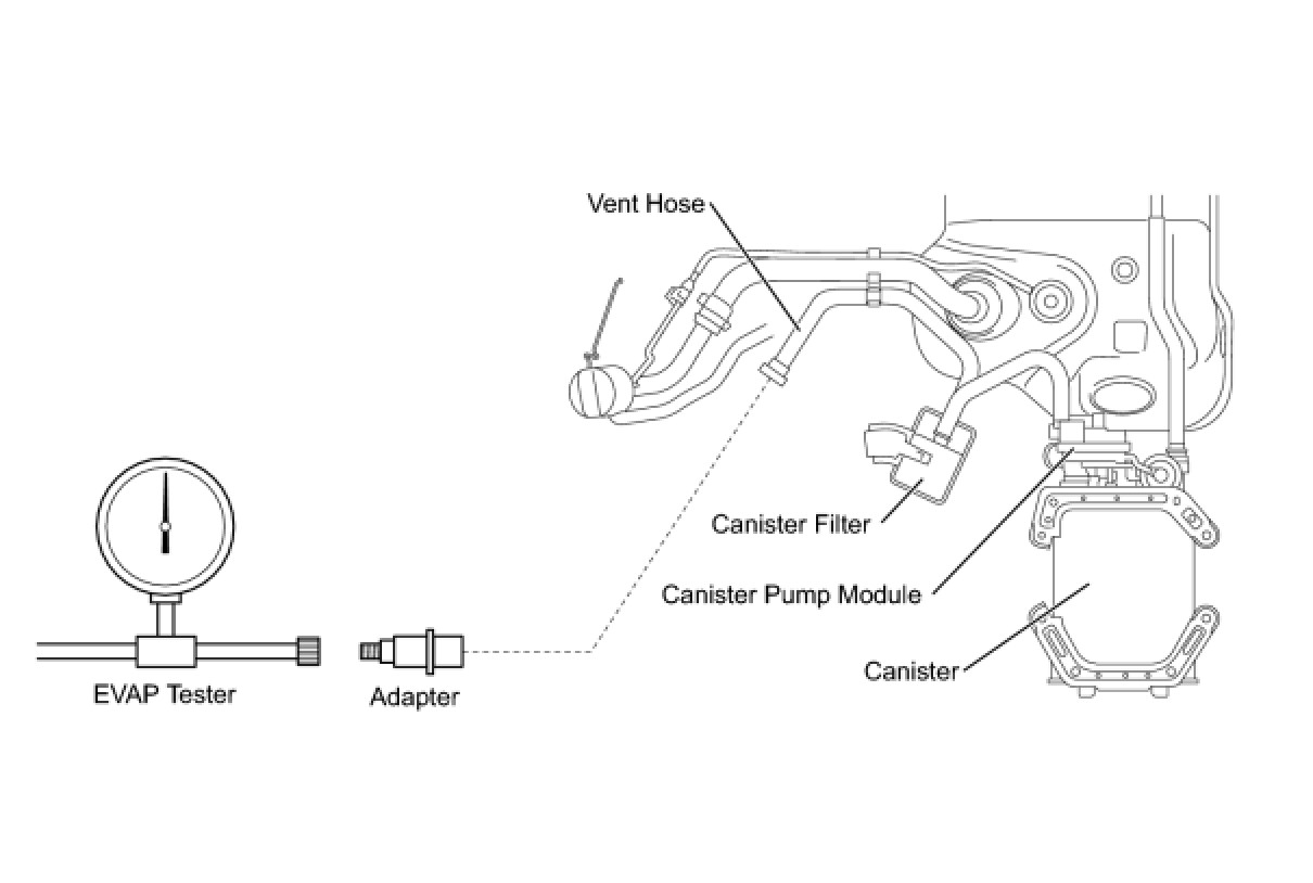 (b) Connect an EVAP tester to the canister pump module with an adapter.