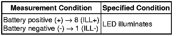 (1) Apply battery voltage to the power window regulator switch and check that the LED illuminates.