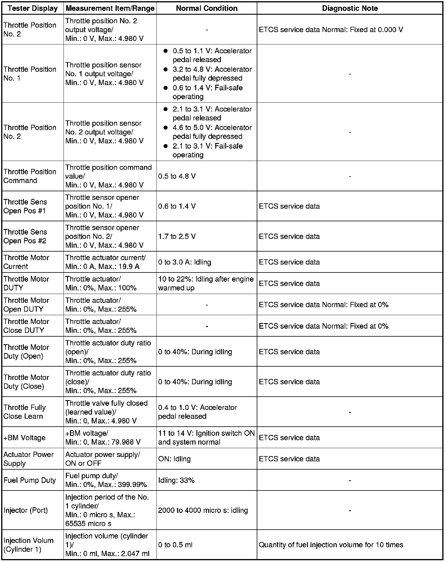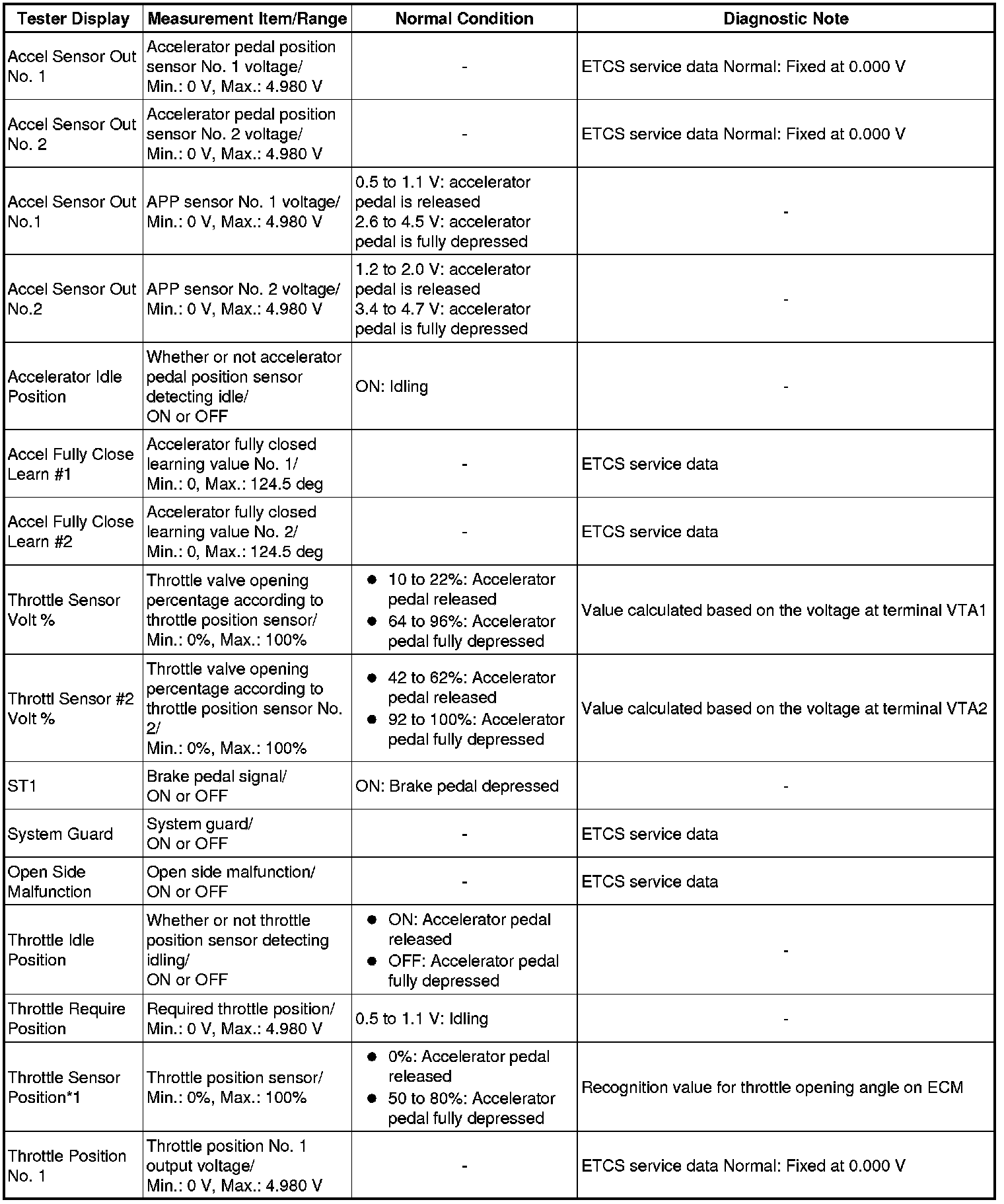 * *1: Excluding throttle valve opening percentage due to idle speed control (ISC).