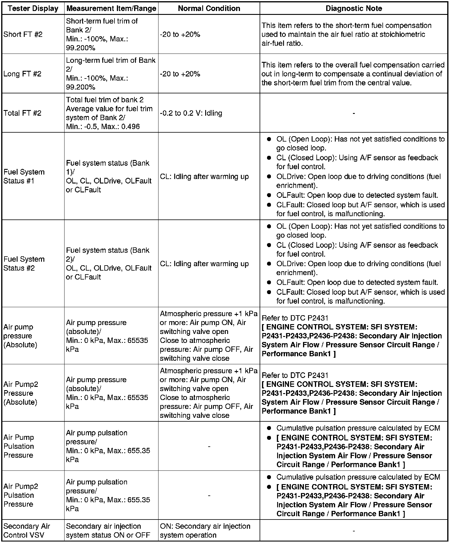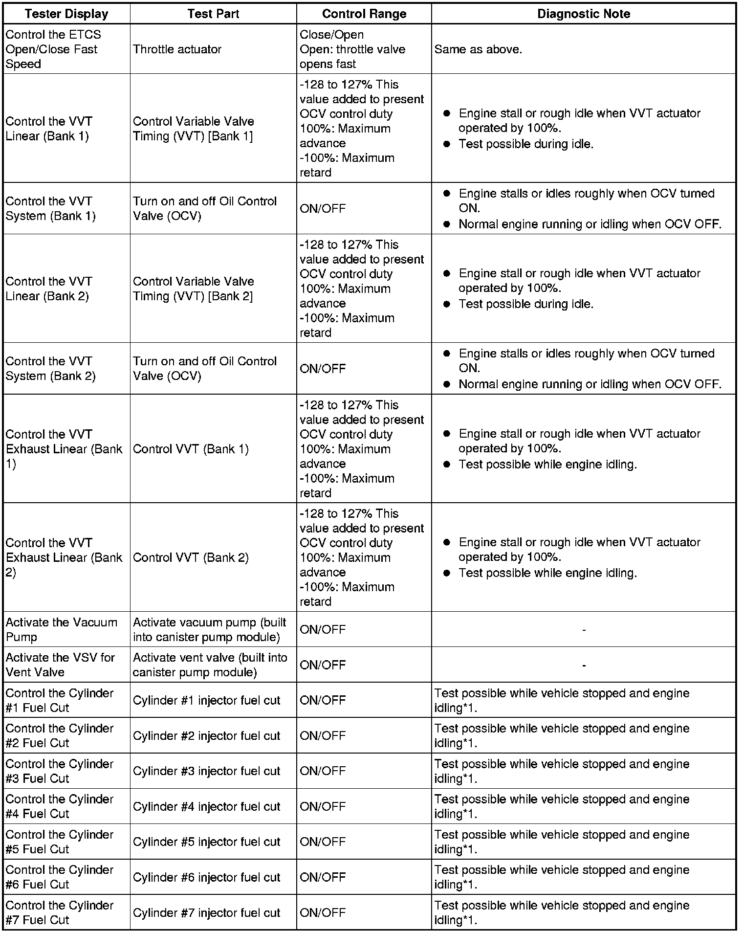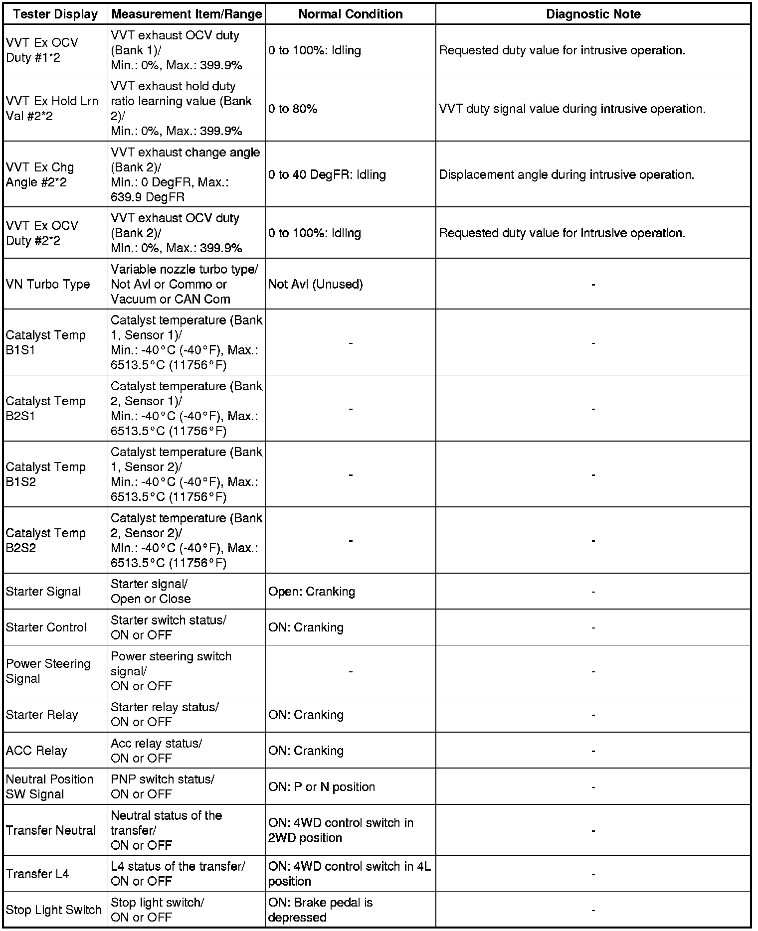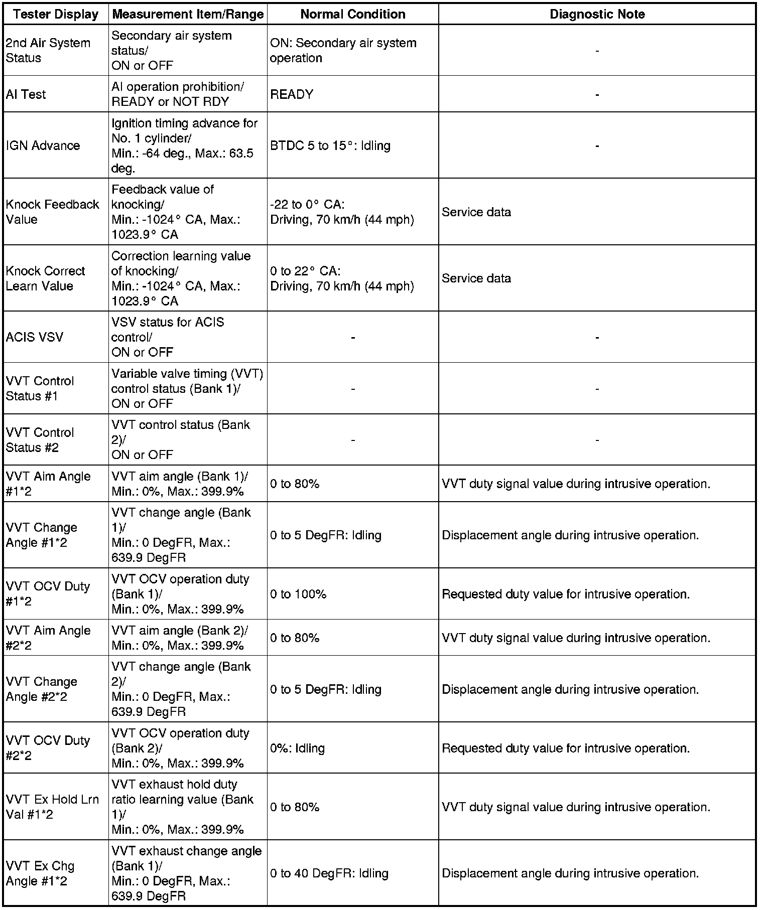 * *2: Data List values are only displayed when performing the following Active Tests: Control the VVT Linear (Bank 1), Control the VVT Linear (Bank 2), Control the VVT Exhaust Linear (Bank 1) and Control the VVT Exhaust Linear (Bank 2). For other Active Tests, the Data List value will be 0.