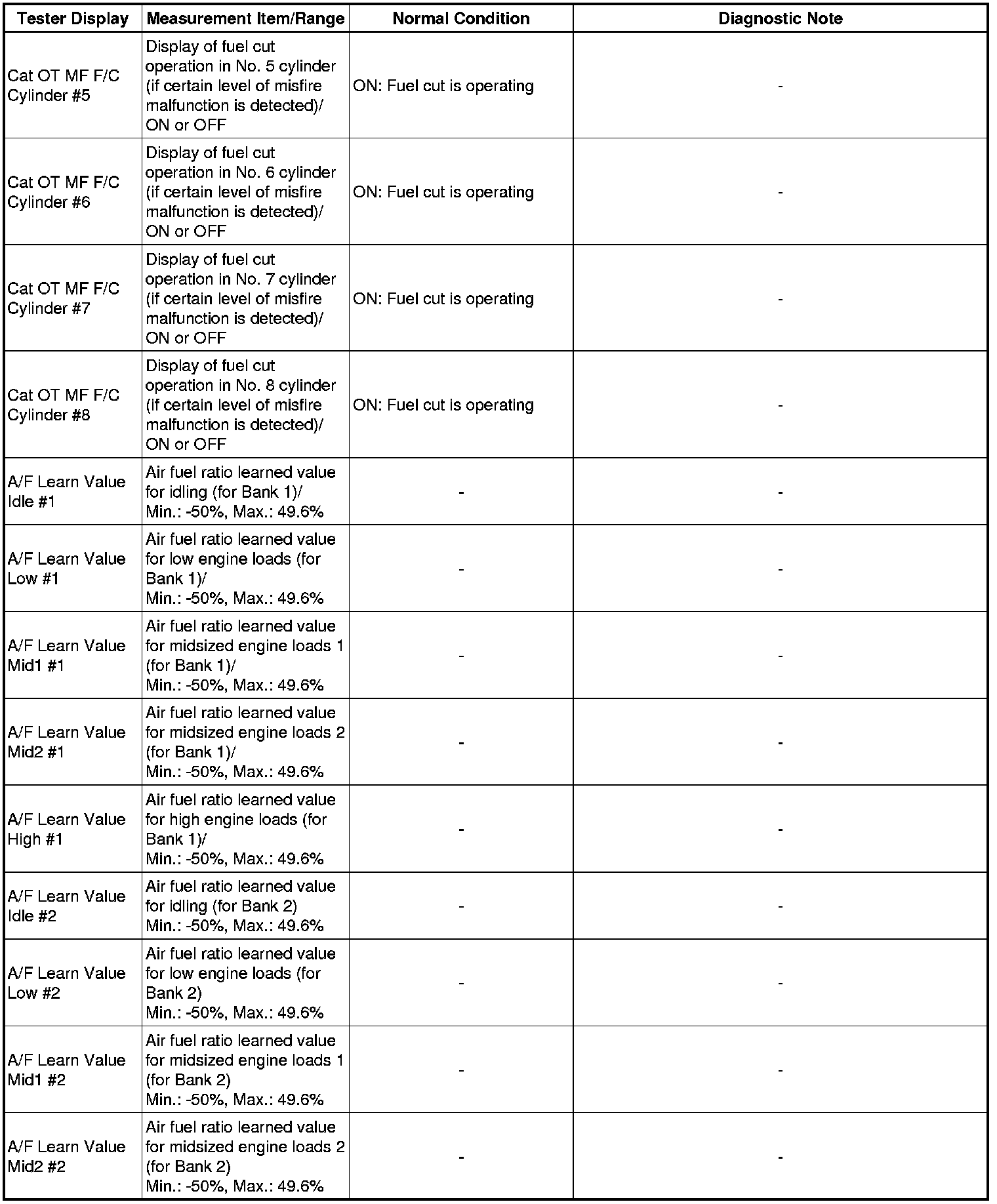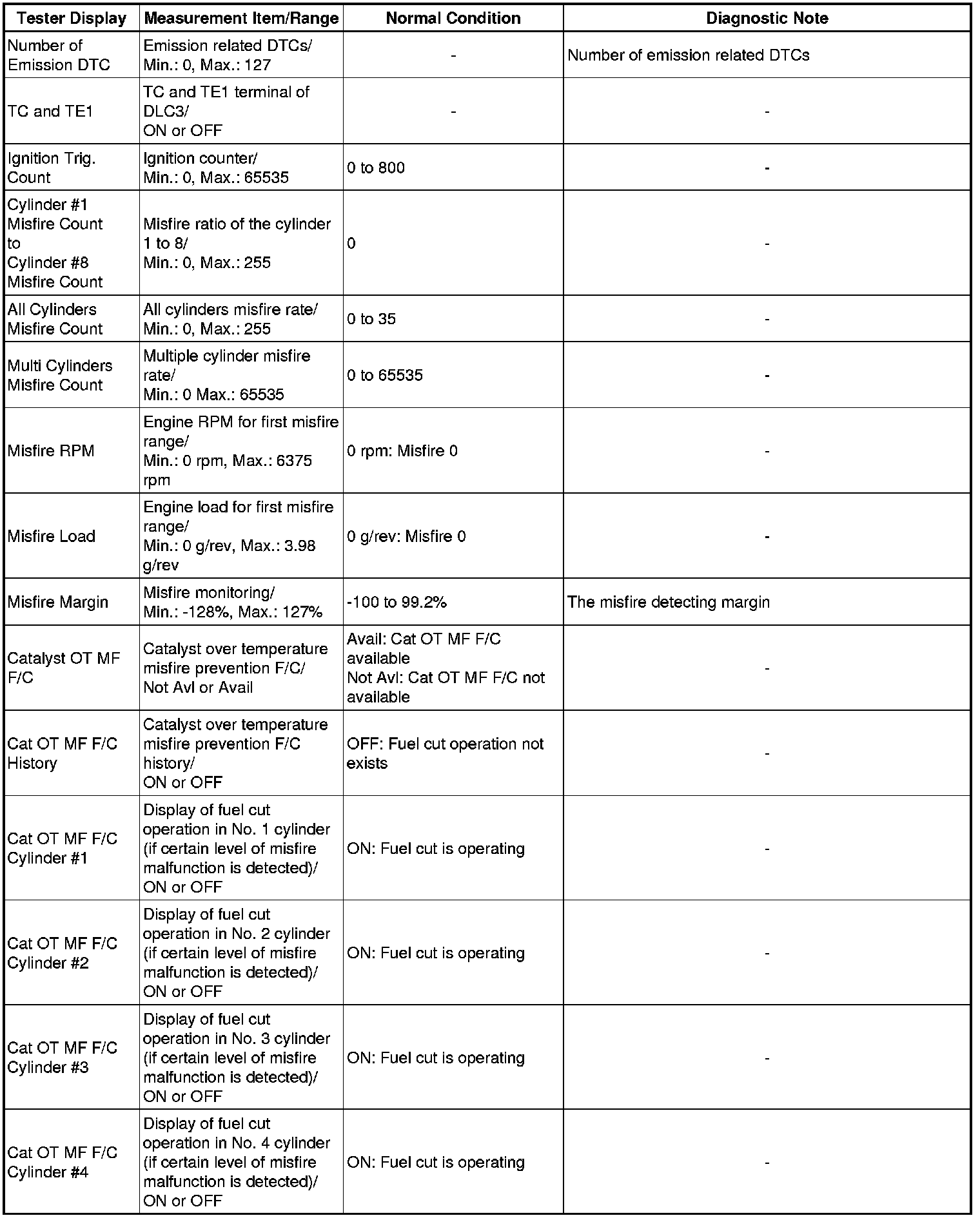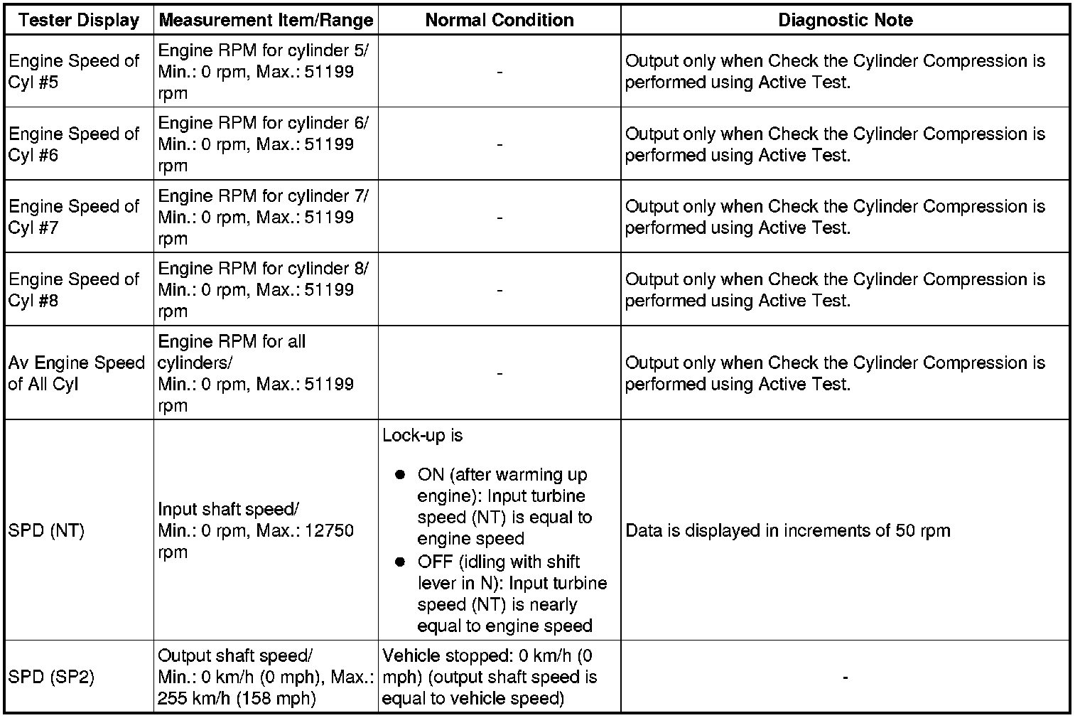 *2: When cranking the engine, each cylinder measures the engine speed.