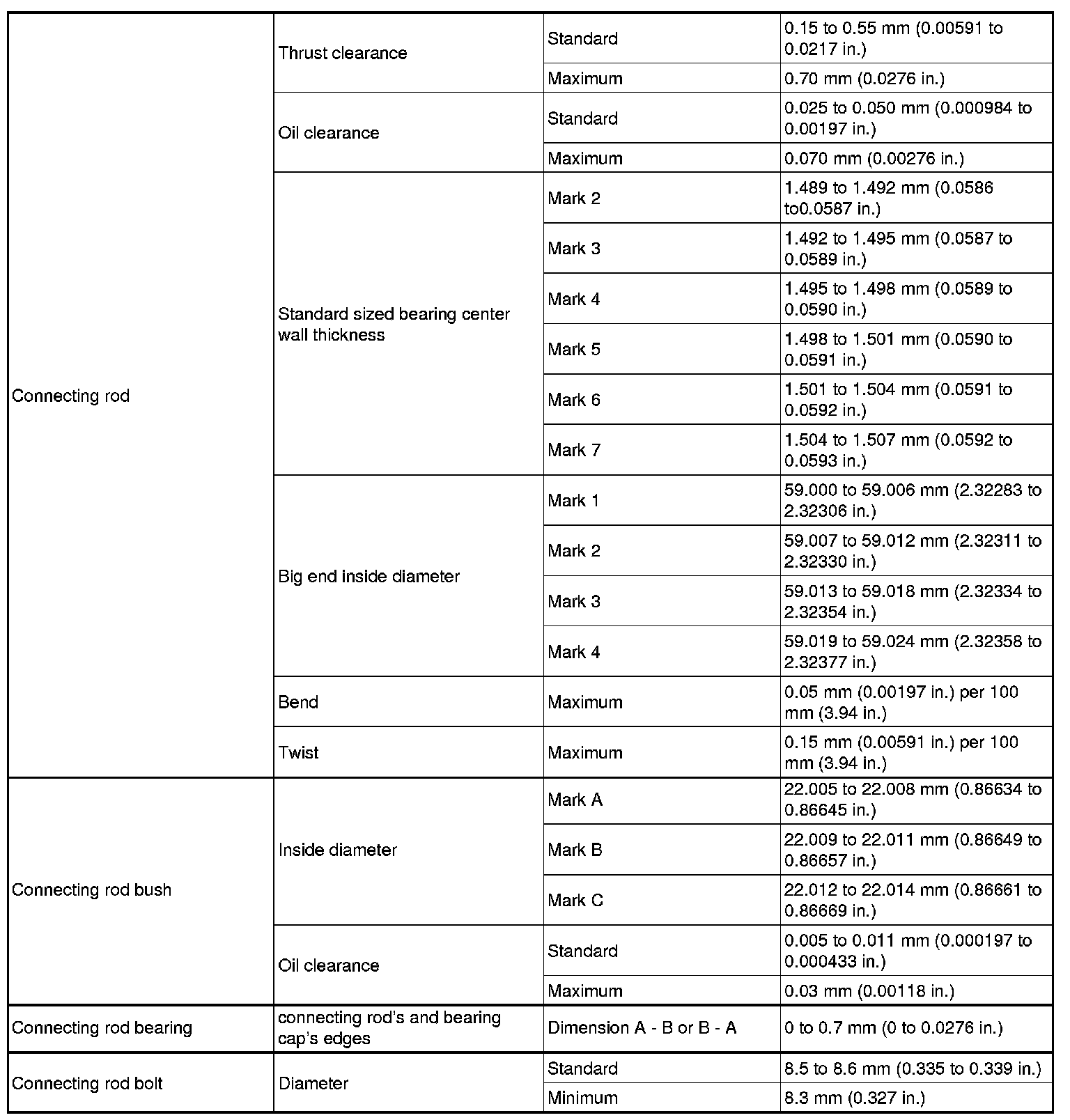 Connecting Rod Side Clearance, Out-of-Round and Diameter