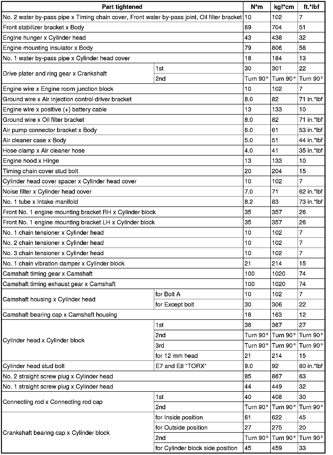 SERVICE SPECIFICATIONS: 3UR-FE ENGINE MECHANICAL: TORQUE SPECIFICATIONS