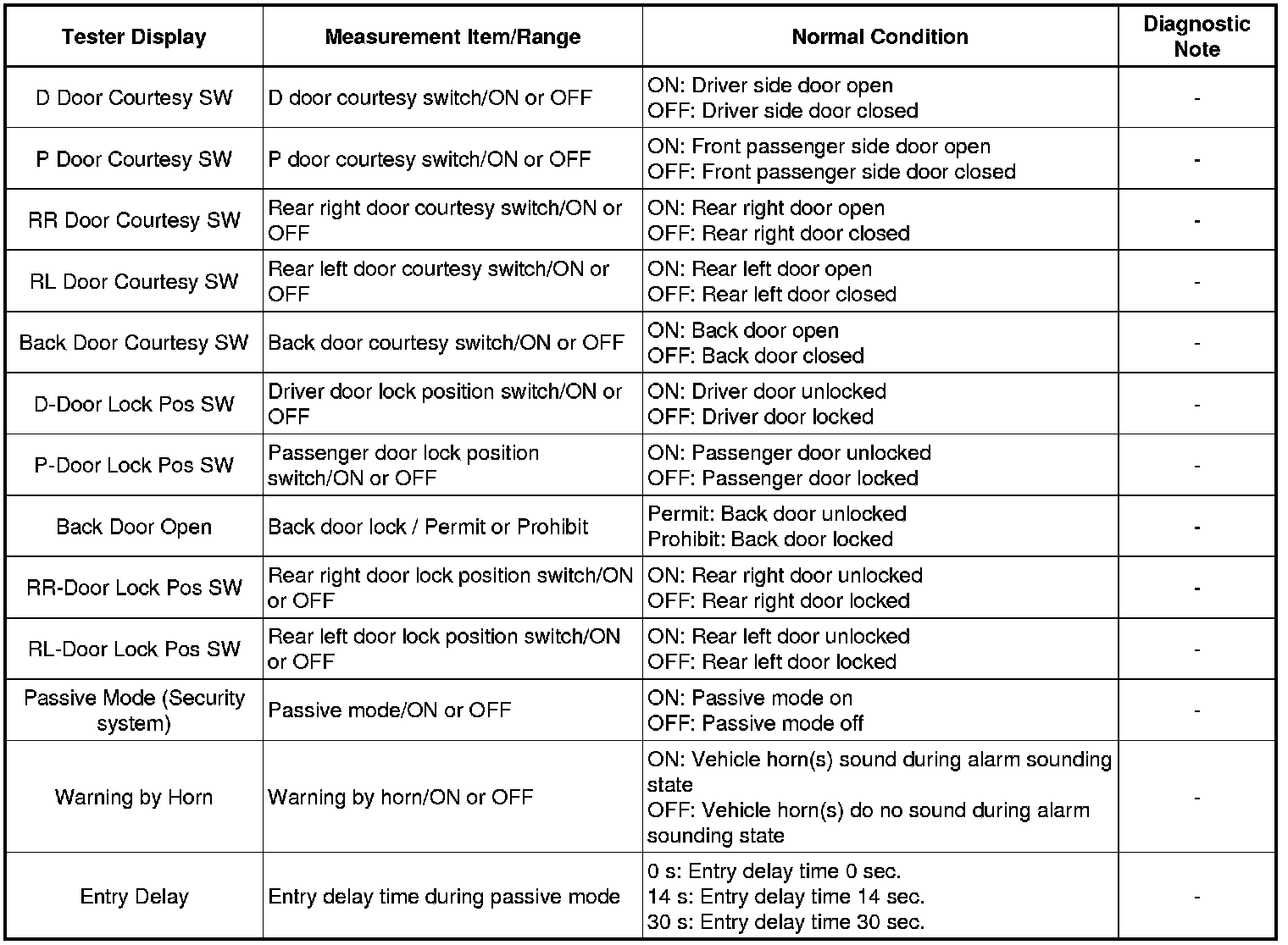 THEFT DETERRENT / KEYLESS ENTRY: THEFT DETERRENT SYSTEM (w/ Smart Key System): DATA LIST / ACTIVE TEST