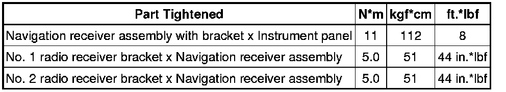SPECIFICATIONS: NAVIGATION / MULTI INFO DISPLAY: TORQUE SPECIFICATIONS