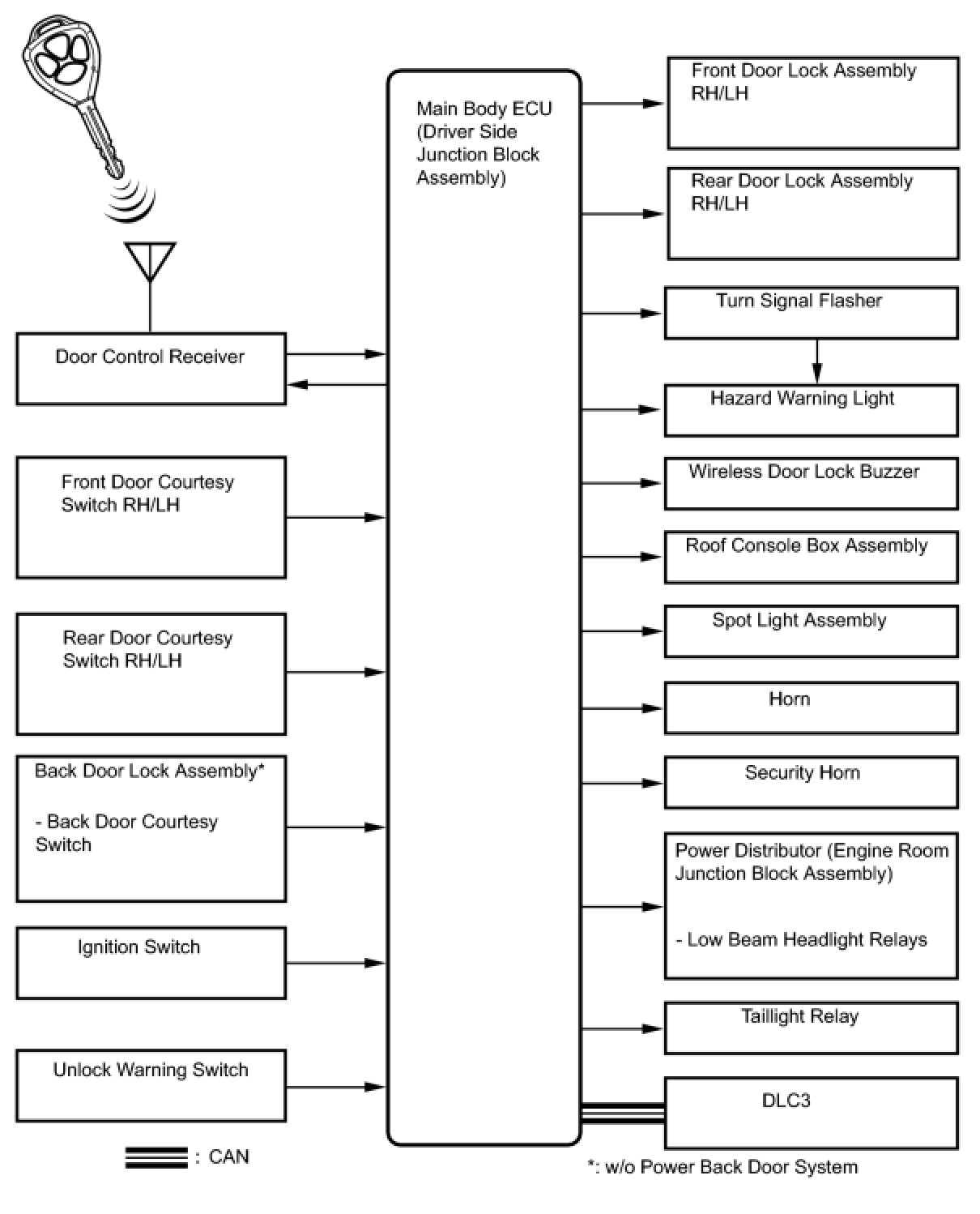 DOOR LOCK: WIRELESS DOOR LOCK CONTROL SYSTEM (w/o Smart Key System): SYSTEM DIAGRAM