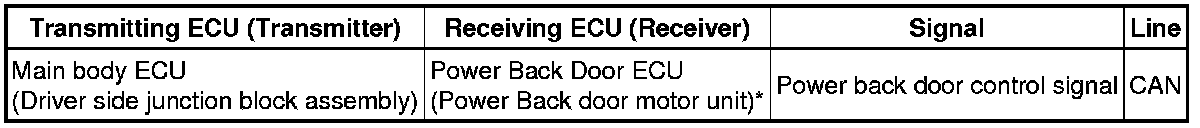 The door control transmitter has the LOCK, UNLOCK, POWER BACK DOOR* and PANIC switches. Operating these switches activates each function.